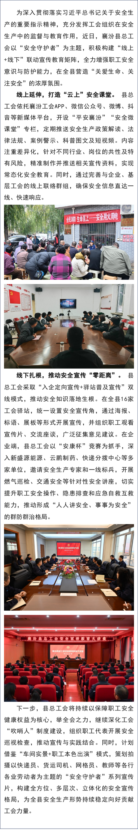 筑牢安全防线襄汾县总工会构建“线上+线...