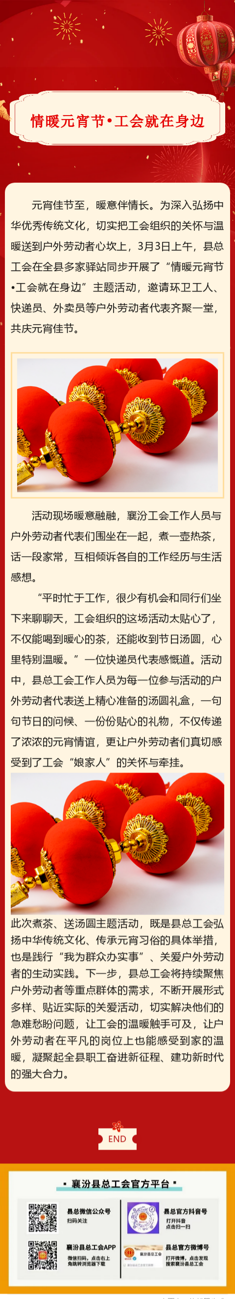 襄汾县总工会开展“情暖元宵节•工会就在身边”主题活动